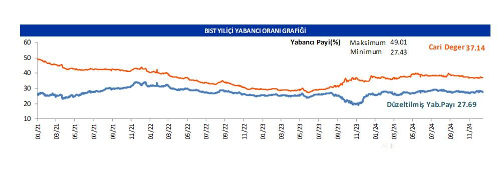 Borsanın yabancı payı günlük bazda -0.08 düşüşle 37.14 seviyesinde seyretmektedir.